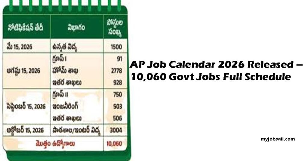 The AP Job Calendar 2026 is an official recruitment schedule released by the Andhra Pradesh Government to fill 10,060 government job vacancies through APPSC across departments.